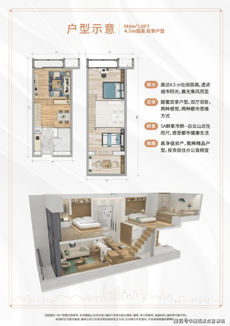 :31-57㎡中轴资产,4.5米挑高设计,打造复式空间,满足多功能需求。