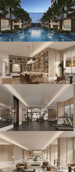 一楼配套逾1000㎡高端会所,涵盖有氧健身、无氧健身、瑜伽跳操室、泳池、咖啡吧、书吧、会客厅等功能,私享隐奢社交主场。