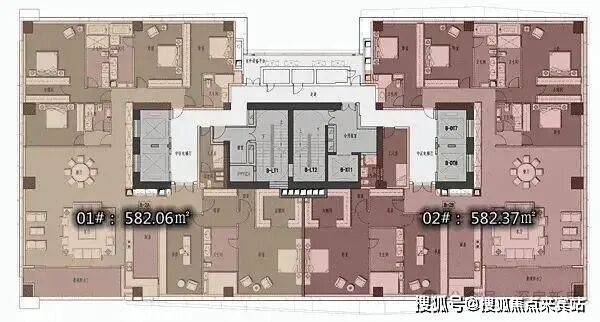 公寓在售:B座,3.6米层高,低区(26F以下)62-238㎡,高区(28-52F)223-340㎡,顶复(58-61F)580㎡