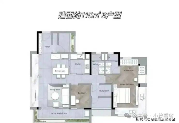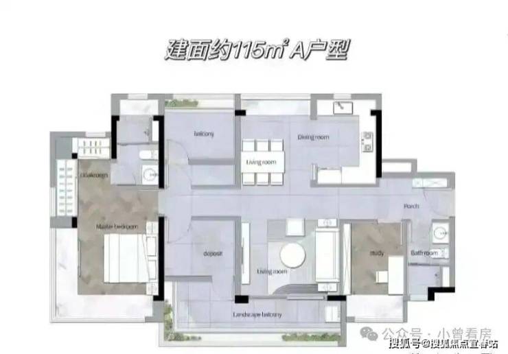 115平B户型有做样板房,也是楼盘的主力户型,货量最多。空间感很强,不说的话完全看不出这个户型面积只有115方。