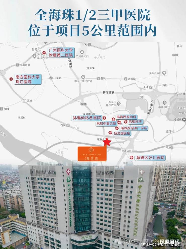 约750米中山大学孙逸仙纪念医院(三甲)约1.5公里海珠区妇儿医院约3.5公里南方医科大学珠江医院、广州医科大学附属第二医院。