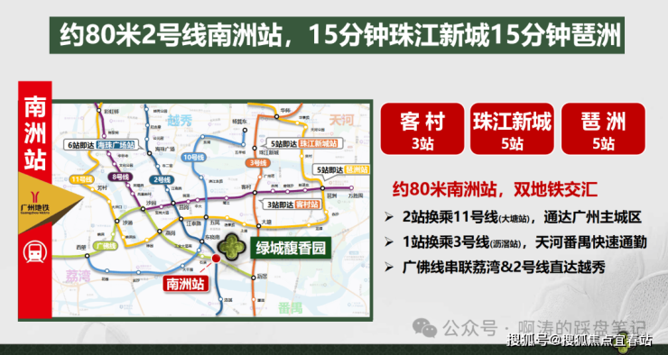 出门即地铁,高效又便捷双地铁上盖(广佛线/地铁2号线南洲站)3站到客村 5站到珠江新城 5站到琶洲