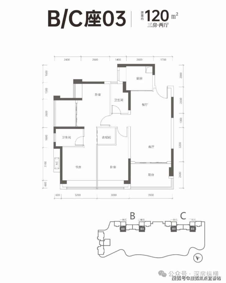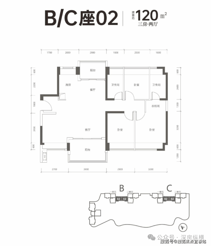 住宅梯户:A座3梯3户;B/C座2梯3户