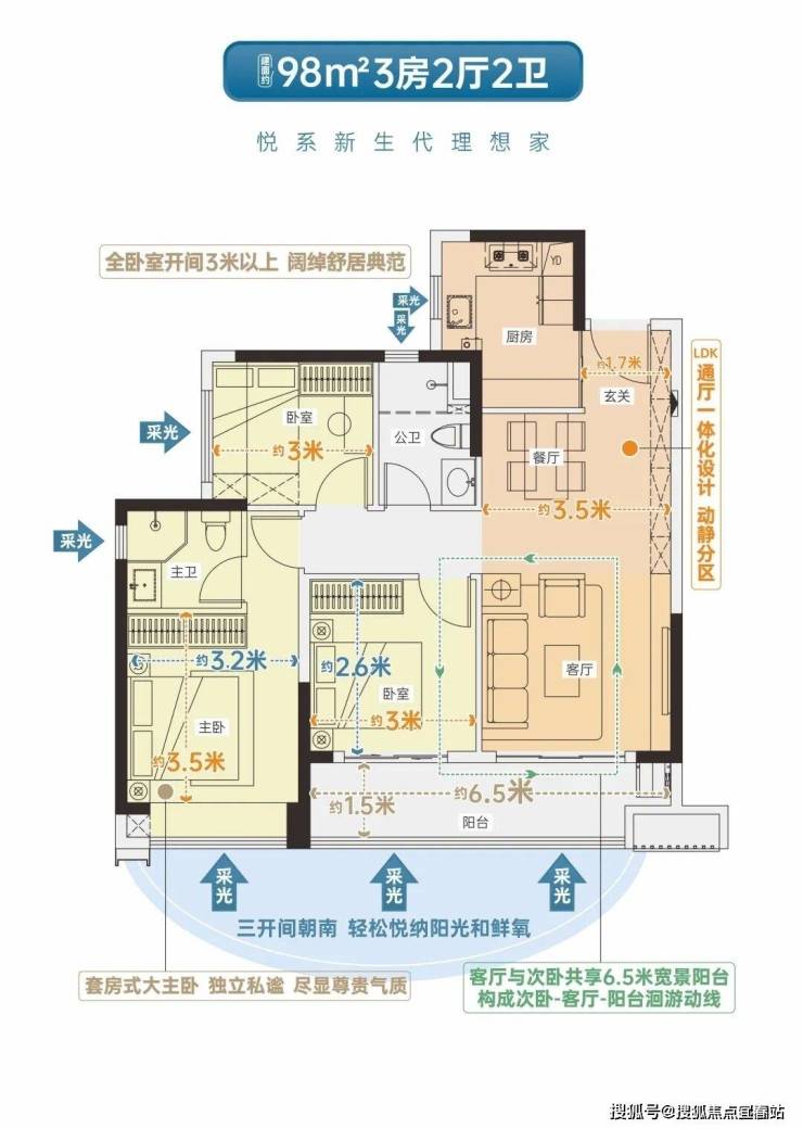 •LDK通厅设计,双开间超6米宽景阳台