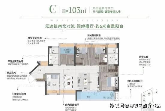 103㎡ 4房2厅2卫,南北通透,4房带主套,灵动户型分寸必用