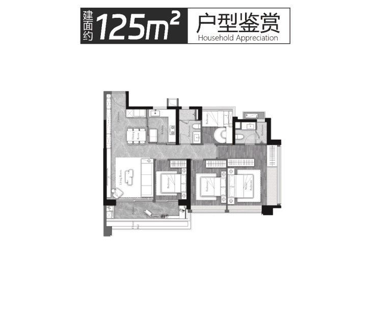 建面约𝟏𝟐𝟓 m² 𝟑房+𝟐厅𝟐卫+灵动空间,全明𝟒开间朝南 ,约𝟏𝟐.𝟖米大面宽舒居,IMAX大方厅,LDK一体化设计,全屋科学收纳系统、实用率高