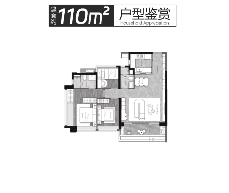 户型:建面约𝟏𝟏𝟎-𝟏𝟖𝟎 ㎡南向滨水三四房