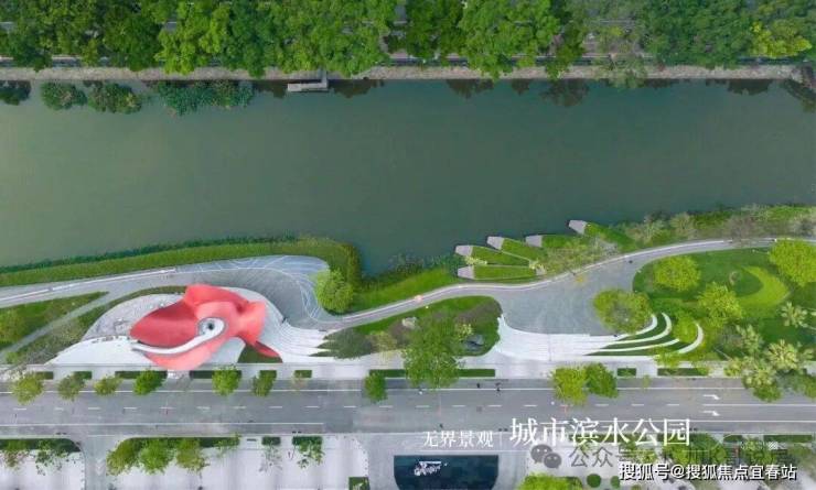 并以开放式的设计手法,沿水岸陆续打造雕塑公园、活力草坪、休憩广场、户外场地以及花园空间等灵动场域,还有大大小小的口袋公园错落分布。