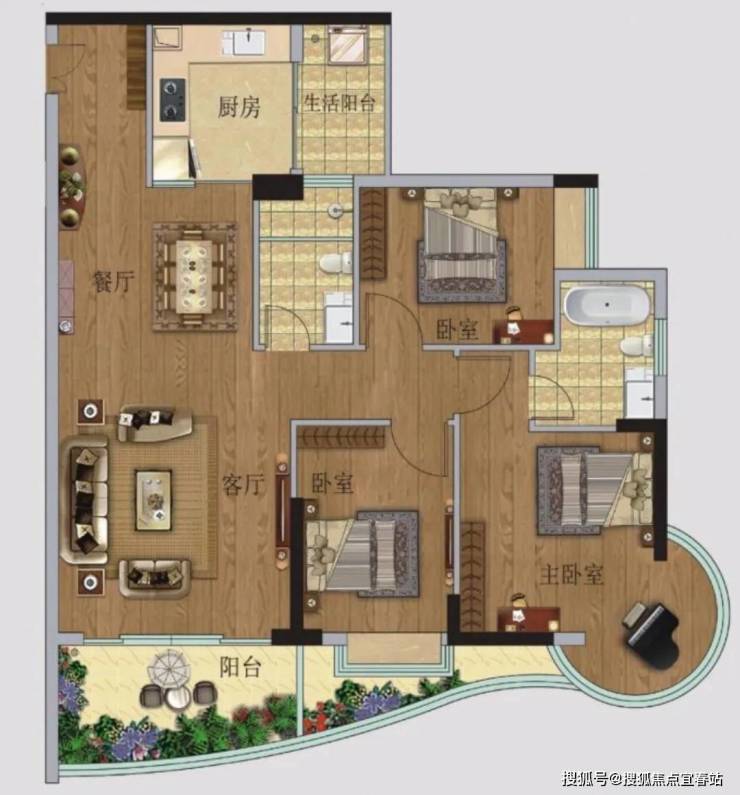 06户型【107房 3 房 2卫】环幕江景