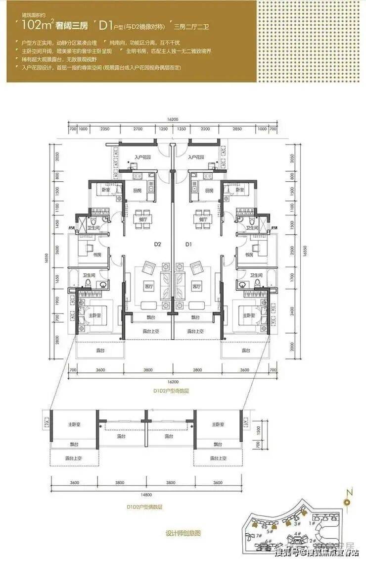 109㎡的3房2厅2卫,设计的是横厅南北通透格局,一体化餐客厅,7.2米超大开间,带大入户花园,主卧3.8米开间,L型厨房。