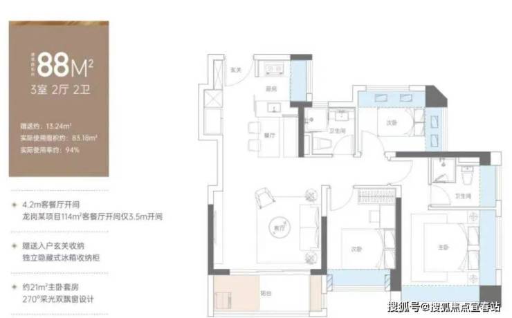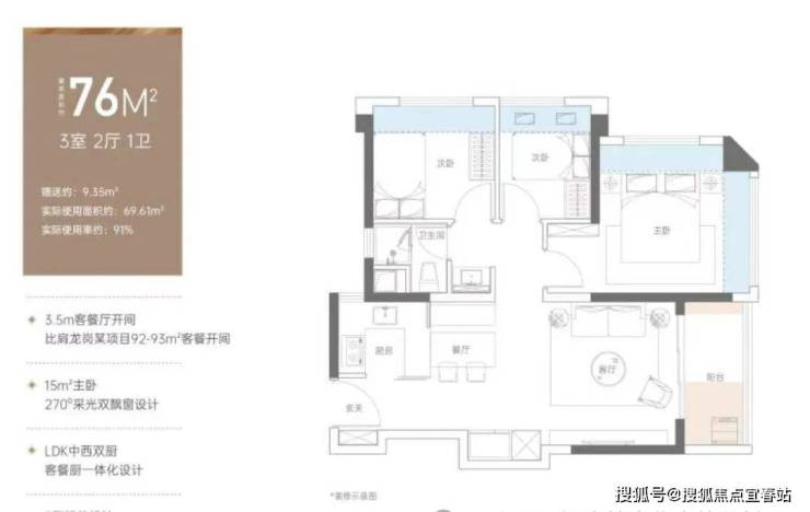 高质产品:建面约76-130㎡精质美宅,实际使用率达91-99%,更大居住空间,更高舒适度;