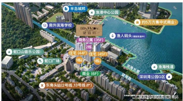 望海玥家园位于蛇口老城区,毗邻半岛城邦、南海玫瑰等豪宅区,享有“二线海景”。南侧老小区部分遮挡海景,少数房源可看海。项目享有蛇口滨海设施,如歌剧院、渔人码头、滨海长廊。