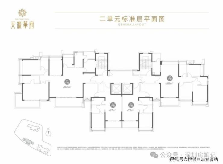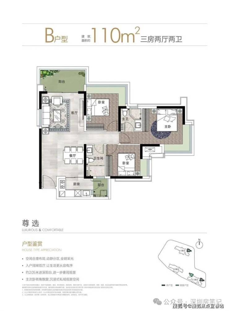 项目占地面积约1.61万㎡,建筑面积约8.17万㎡,容积率仅3.05,是深圳今年最低密度的住宅项目之一。规划3栋高层住宅31-35层(一单元:35层,3梯5户,二单元:31层,2梯4户,三单元:33层,3梯6户),呈L形分布,总户数443户,其中商品房297户。