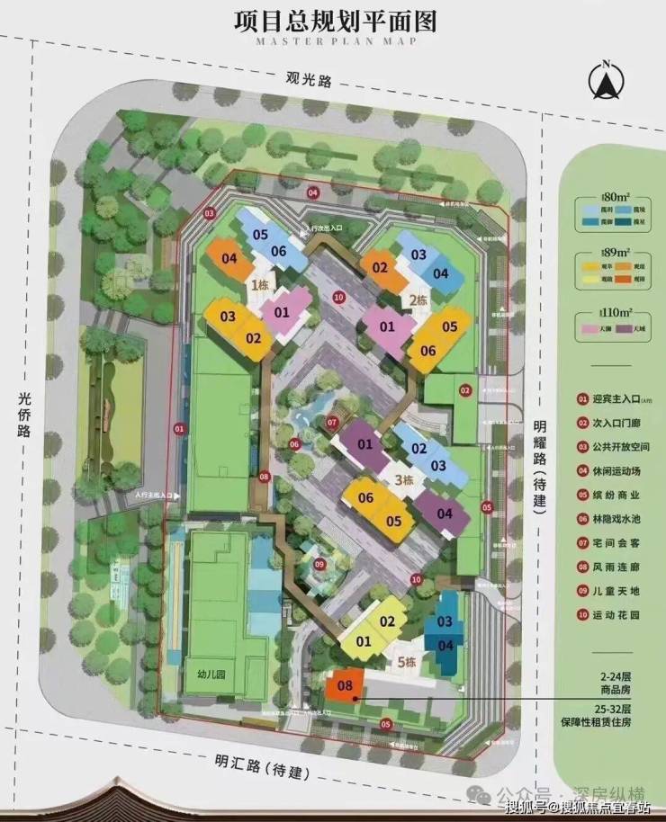 观玥名邸总建面约11.5万㎡,其中包括约7.2万㎡住宅,2000㎡商业,2150㎡幼儿园,以及其他公配。
