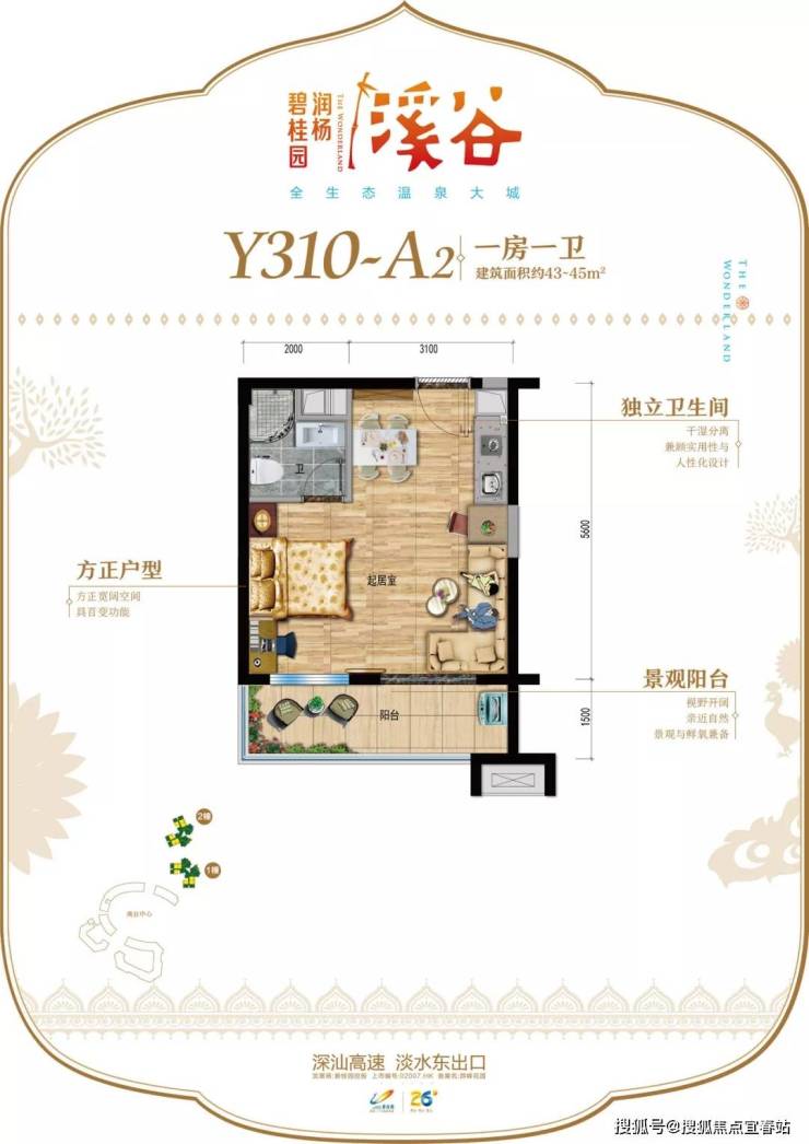 润杨溪谷占地近3000亩,享有罕见的天然偏硅酸温泉和水杉湿地,背靠的金桔自然保护区内集合了山、林、溪、谷、河、瀑布等自然资源,逾千种珍稀动植物栖息于此,名副其实“全生态温泉大城”。项目占地近三千亩,建筑面积220万㎡,首期容积率:1.18,绿化率:33.80%。分多期开发,产品类型涵盖住宅、别墅、公寓、商铺,总房源7418套。社区内配有碧桂园集团首家东南亚风情特色温泉酒店,目前已在运营当中,酒店中心园林近千平无边际泳池、五大功能温泉泡池区、造浪池、儿童游乐池等游乐设施;此外,社区内规划有东南亚风情商业街、千人宴会中心、水杉湿地公园、山体公园、风情商业街、18班幼儿园等城市级配套。