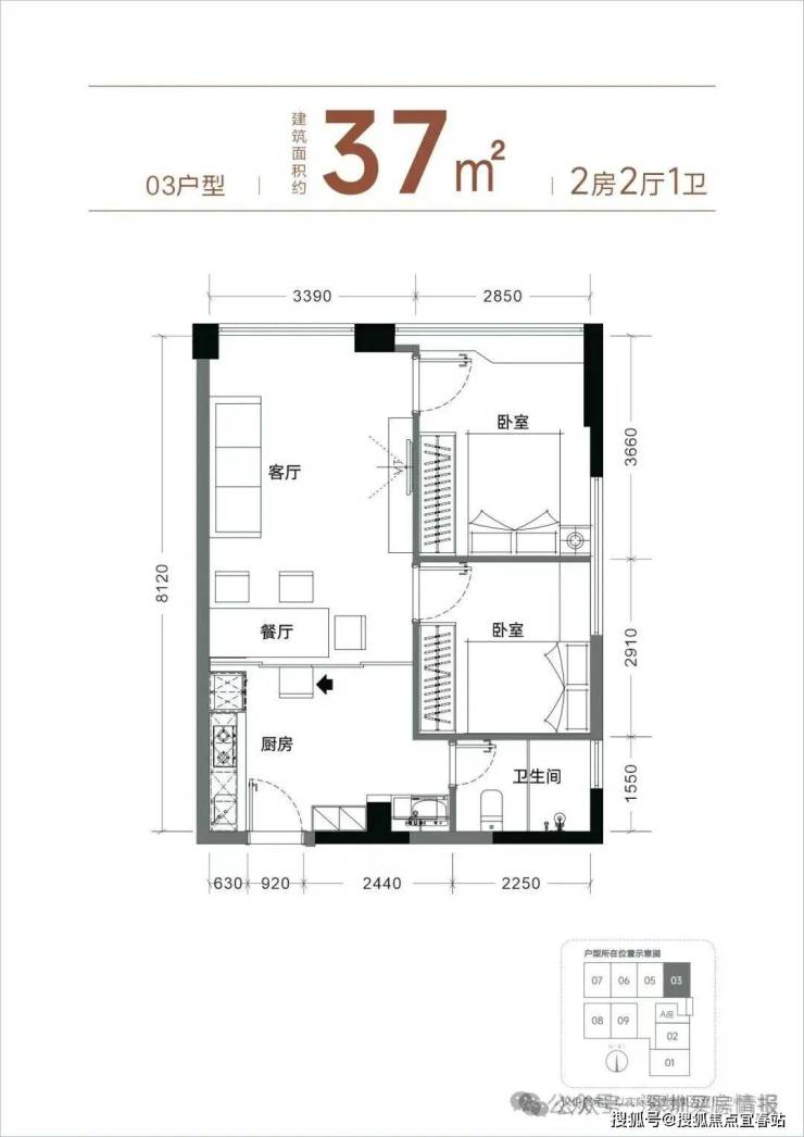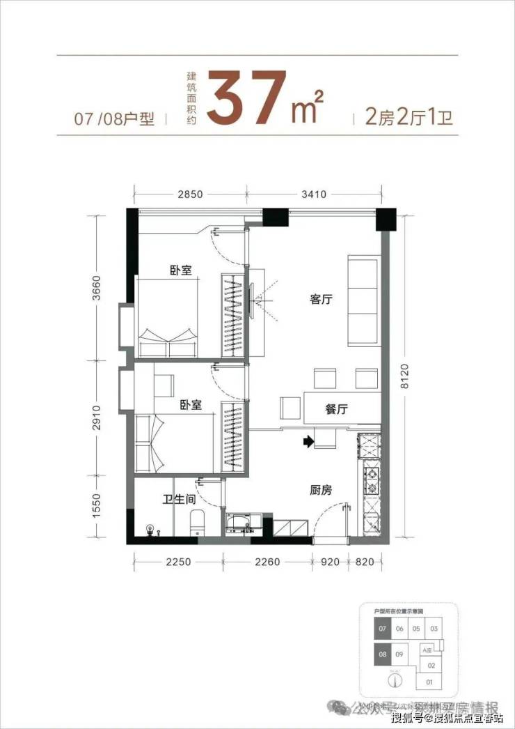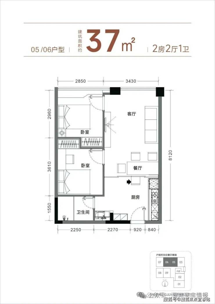 【产品面积】约37㎡两房(实际套内使用面积接近54㎡)