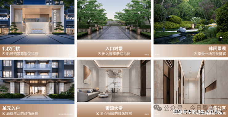 精琢六重归家礼序,奢阔礼仪门楼——入口对景——休闲景观——入户花园——奢阔大堂——品质公区,层层铺垫归家仪式感,让业主感受尊崇、互动、沉浸、归属的全新归家体验。