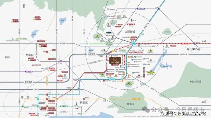 约5公里范围:尽揽百万㎡商圈,星河COCOPark(龙岗山姆会员店)、大运天地、恒大城市之光、天光城等知名商业体环伺,畅享都市繁华便利。