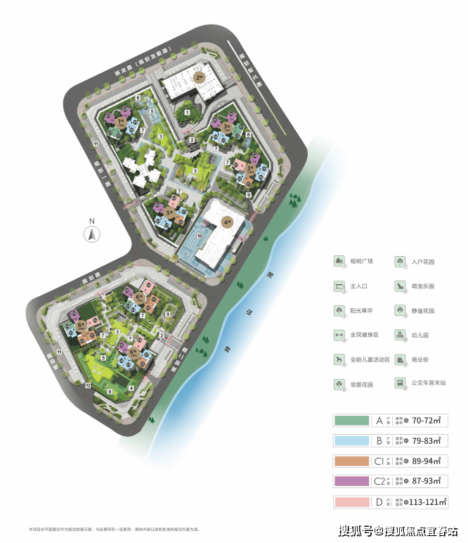 项目整体以塔楼围合式全南向排布,4.5低容积率,宽绰楼间距,片区罕有的纯南向河景视野、雅致中心园林,营造一线亲水的舒居体验,对位现代人居品质需求。建面约70-113㎡2-4房,覆盖全家庭周期,高使用率,满足成长家庭型家庭的复合需求。全南向采光,通风优异,收揽河岸风光与马峦山景观,奢阔空间享受,舒适生活体验。