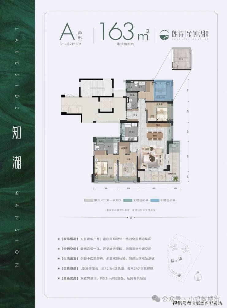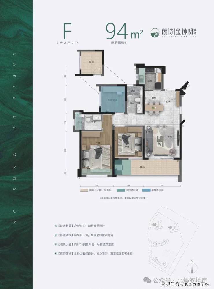 在产品设计上,朗诗金钟湖壹号全系主打建筑面积约94㎡至163㎡的精装三至四房,户型主打南北通透、双阳台、全明格局、动静分离、主卧套间、U型厨房,涵盖94㎡方正三居及115-163㎡阔绰四居等多种格局。其中约94㎡三房以“户型方正、采光充足”为核心设计语言,通过精巧的空间布局实现了小面积下的功能最大化,是刚需家庭一步到位的品质之选;约115-138㎡四房升级为双卫配置、南北对流格局,配备双阳台与主卧套间,将空间舒适度与居住私密性完美融合;约163㎡四房作为项目的王牌之作,采用南北通透、双阳台、四开间朝南的设计,约4.2米面宽客厅搭配约7.5米南向巨幕阳台,将金钟湖公园的苍翠景致与城市天际线尽收眼底。项目引入朗诗绿色科技系统,从恒温恒湿到空气净化,将健康、舒适、节能的生活理念贯穿于每一个居住细节,为中山高净值家庭打造了一个“会呼吸的家”。更令人称道的是,项目当前最新参考均价约12000元/㎡,较周边新房低约4013元/㎡,较周边二手房低约6726元/㎡,展现出极高的性价比与资产安全边际,这一价格在东区核心地段堪称“价值洼地”。
