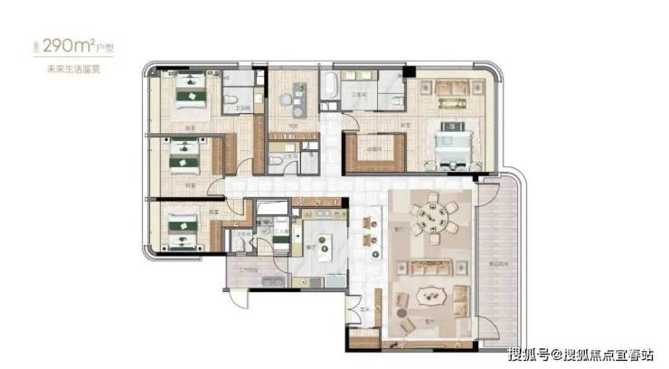 ◎290㎡五房户型鉴赏◎——汇悦台创纪录4.6亿+网签单元设计师亲自执笔