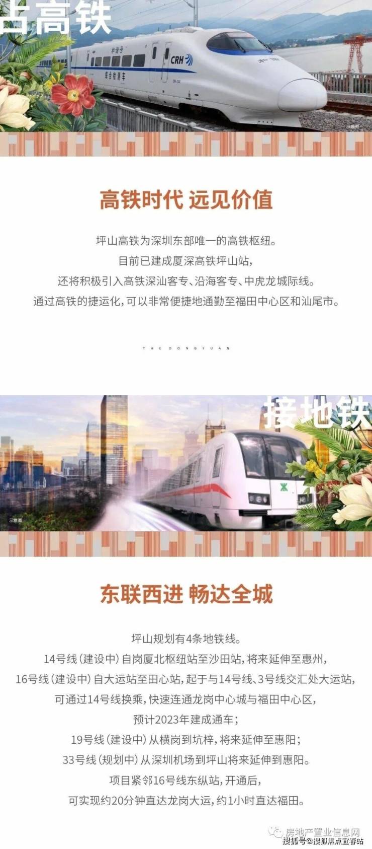 豪方东园处在整个坪山的南侧,临比亚迪路,位于比亚迪股份有限公司的正对面,距离在建地铁16号线东纵站地图所示地铁口直线距离约500米,步行距离约800米。地铁16号线预计2023年7月开通,经4站到坪山围与地铁14号线换乘。