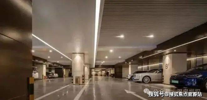 车库色调主要以香槟色为主,通过对行车通道与停车区域的色彩对比处理室内空间关系;
