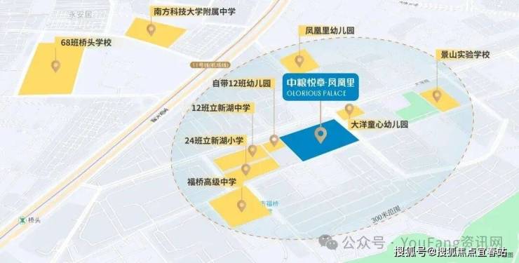 项目300米范围内,自带12班幼儿园/大洋童心幼儿园/凤凰里幼儿园/24班立新湖小学/12班立新湖中学/福桥高级中学/景山实验学校 环伺,集聚约6000稳定师生资源,覆盖上万户家庭,定向吸附钱潮涌动。