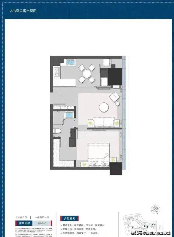 公寓90平户型一房一卫:
