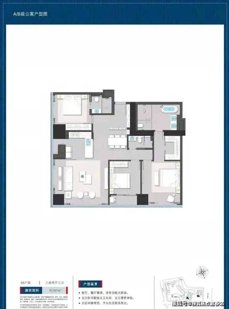 公寓197平户型三房两卫: