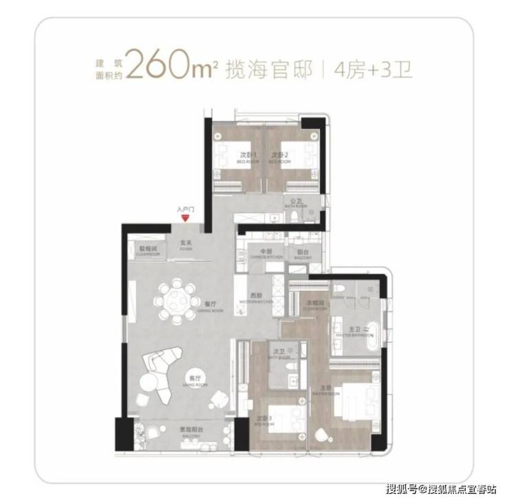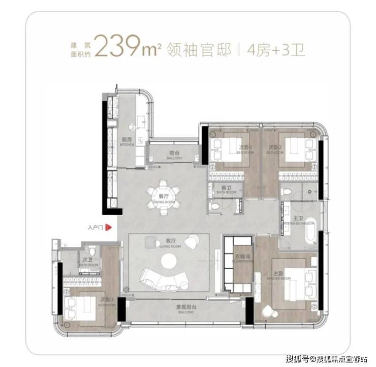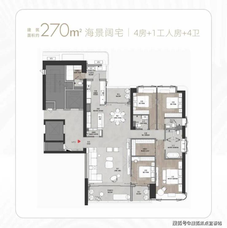 T9/T10栋:总高53层,4梯3户,183-270㎡4房及270㎡复式。