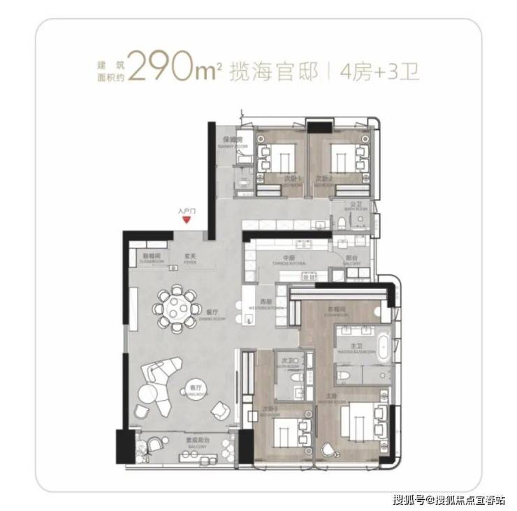 T11栋(五单元):总高52层,3梯3户,164-290㎡3-4房。