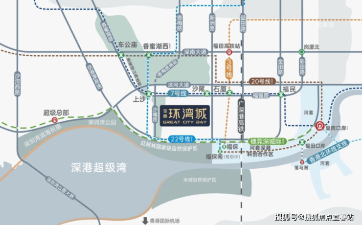 金地环湾城位于福田区福强路与沙嘴路交汇处,地处深港超级湾海岸线核心区域,是深圳与香港双城融合发展的关键节点。