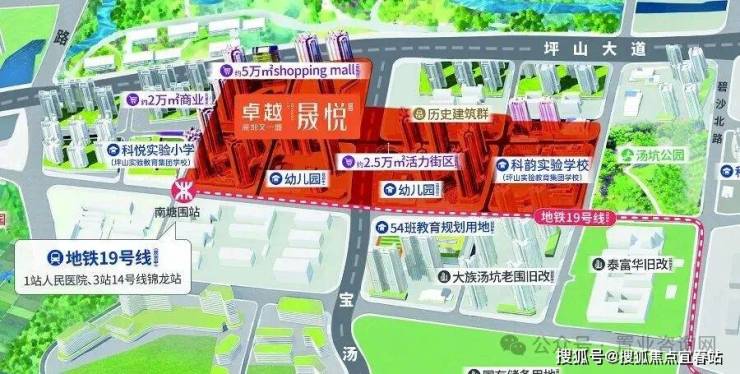 2所九年一贯制学校:家门口54班科韵学校(在建中)、54班规划教育用地(大族汤坑老围旧改地块)