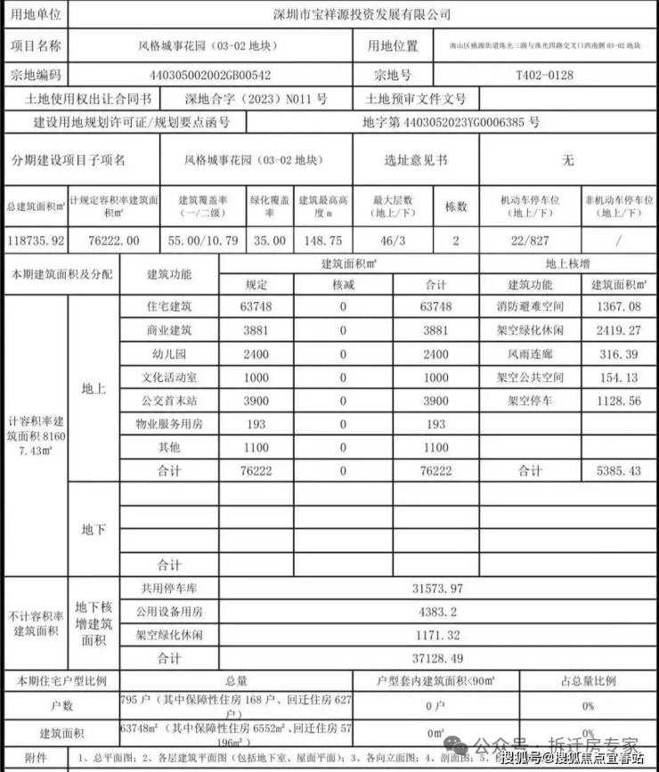 03-02地块总建面约12万㎡,住宅建面约6.4万㎡,795户住宅,用于保障性住房168户、回迁住房 627户;还有3881㎡商业。