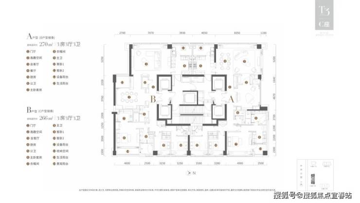 A/D户型:313m²三房三厅三卫,南北通透(卧室全南向)