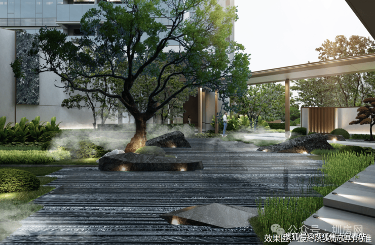 万丰海岸城·檀府外部“三公园”环绕,内部园林亦有风情。项目现代东方禅意的园林景观,是日本知名景观设计师户田芳树亲手执笔,区域少见的“风雨连廊”设计,串联园林和各楼栋架空层,移步易景,风雨皆宜。