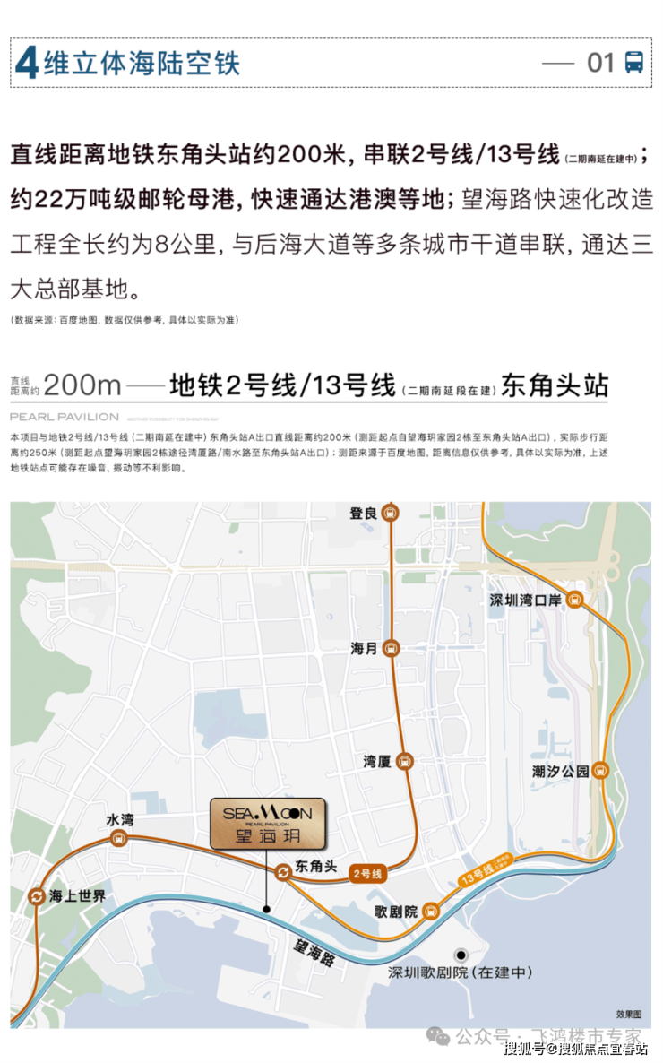 对于现代都市人而言,便捷的交通是生活品质的重要保障。望海玥与地铁 2 号线及 13 号线(建设中)东角头站相距约 200 米,步行即可轻松抵达。地铁 2 号线贯穿深圳东西,能够快速连接福田、罗湖等核心区域,无论是日常通勤,还是周末前往其他区域休闲娱乐,都能让您快速到达目的地。而即将开通的 13 号线,将进一步完善深圳的地铁网络,为您的出行提供更多便利,让您畅享高效便捷的都市生活。