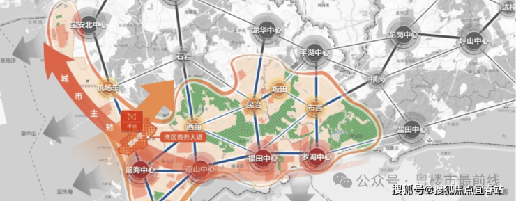 深圳城市主轴自罗湖、福田、南山一路向西迭代,4.0城市新中心落定前海宝中。