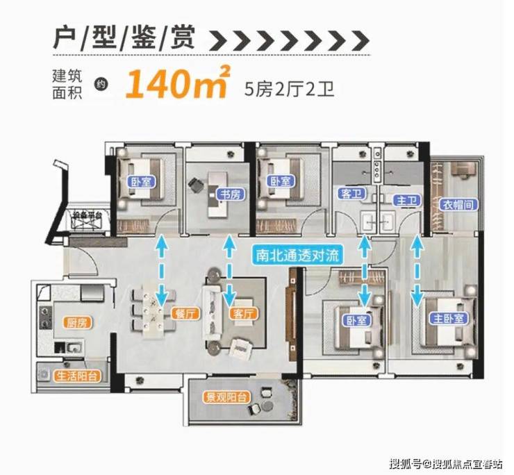 140平5房2卫设计是很多大家庭的首选,遗憾的是没做3卫。
