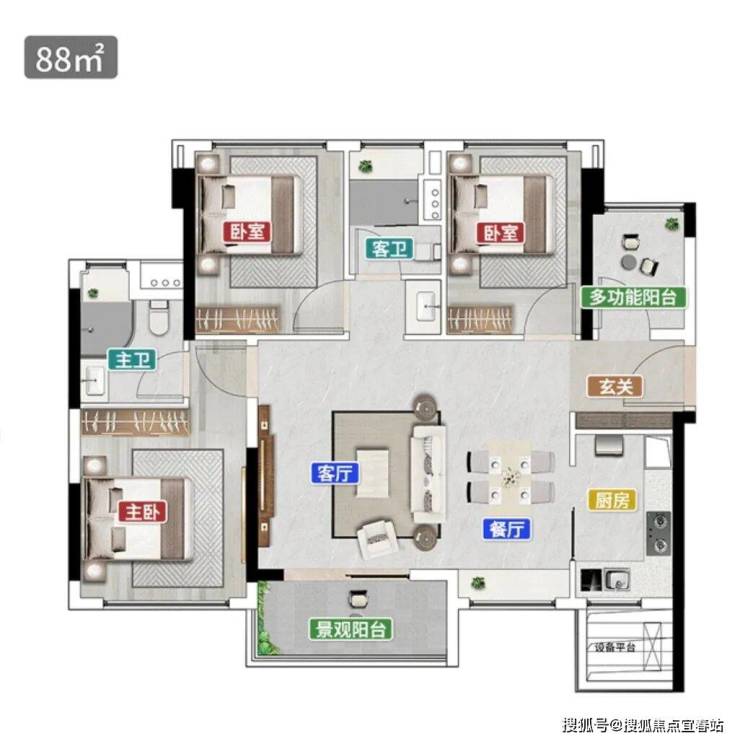 :88㎡3+1房产品的推出,不仅解决了刚需购房者的需求,也提升了项目的竞争力。