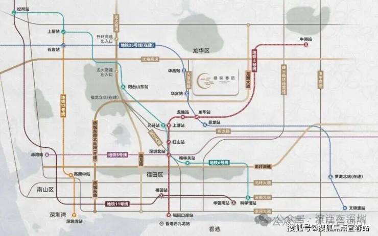 交通方面,项目聚势地铁/快道/高速/高铁立体交通路网,约1公里25号线华富站(建设中),后续换乘地铁4号线,可达北站枢纽、福田CBD。