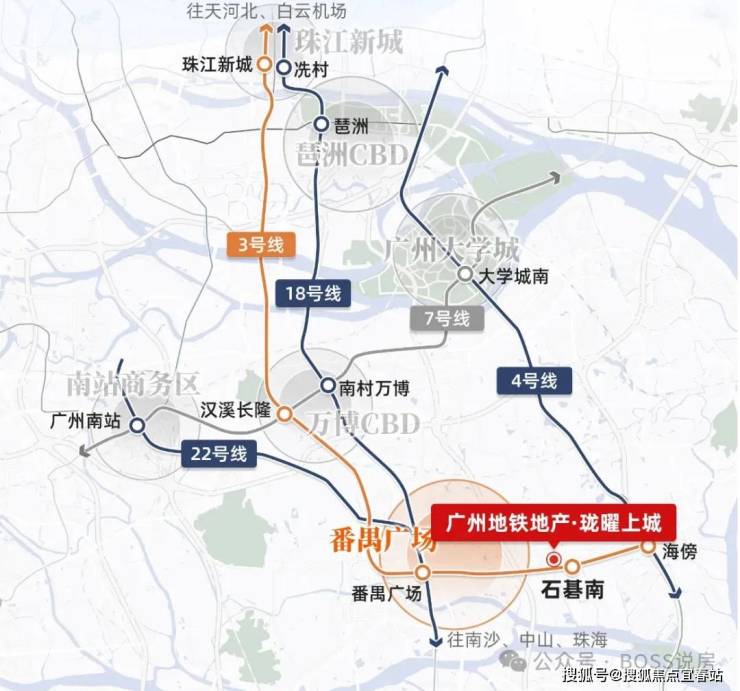 南拓金脉:“珠城-琶洲-万博-番禺-南沙”广州城市南拓发展战略“超级金脉线”;