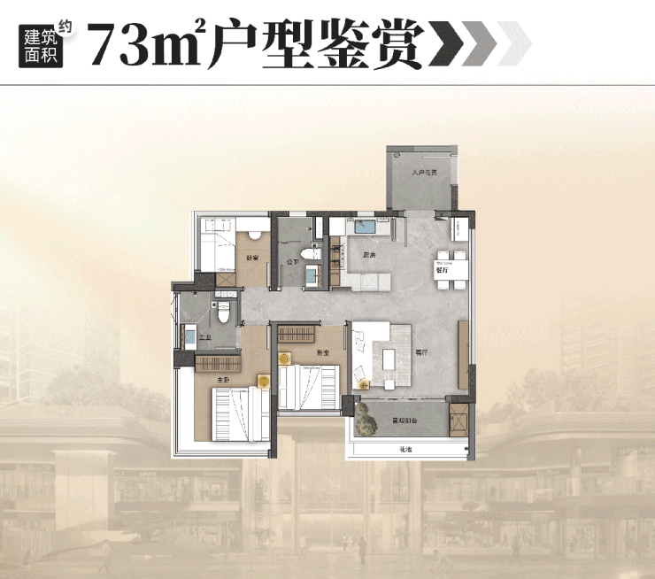 户型面积:建面约73-130㎡全南向4/5空间两厅两卫