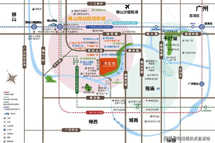 1、西站高铁枢纽,串联2高铁(贵广高铁、南广高铁),2城际(广佛肇城际、广佛环线),4地铁(佛山地铁3号线,4号线,14号线,广州28号线),连通广佛,构建“1小时+零换乘湾区生活工作圈”。