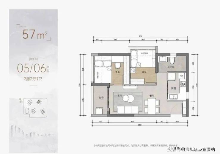57㎡2房小户型集中分布在1栋四单元,对称户型,只有东南和东北两种朝向。户型图没标尺寸,但不难看出格局还是很方正的,竖厅设计,几乎没有不合理空间的浪费,过道都在客厅里,两个卧室都有大飘窗,加上阳台的赠送,使用率肯定不低。