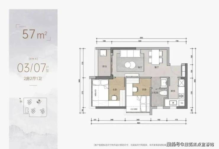 客厅开间做到了3.6m而且阳台还不是承重墙,也就是说咱们的客厅还能往外推一些,做一个更大的公区。阳台东南朝向可看小区园林景观,西南侧则可以看到南山的山景景观。采光及通风效果都是非常优质的。