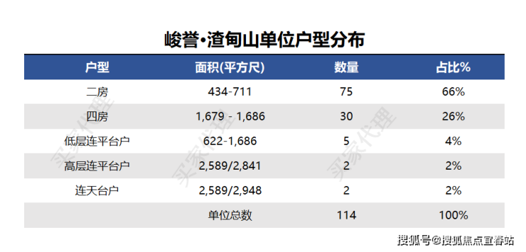 峻誉·渣甸山共建有两幢住宅大厦,均楼高18层,每层各设1至4伙单位 ,合共提供114伙住宅单位。