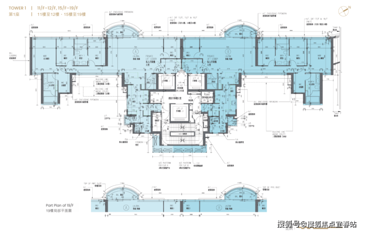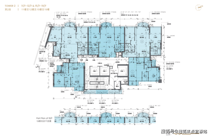 标准户共计105伙,分布于各座2至19楼的A、B室。实用面积在434至1686尺之间,每一户都精心配置了6