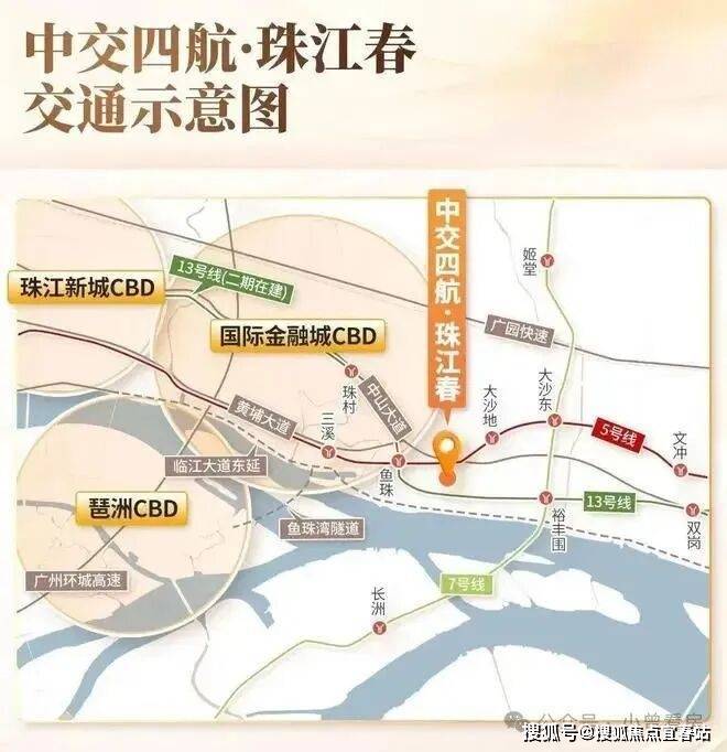 地铁交通:5/7/13三地铁交汇,约500米到鱼珠地铁站,0换乘一站到天河,直达珠江新城。而前往金融城,也仅需短短5分钟车程,20分钟即可抵达珠江新城,这样的交通优势无疑为鱼珠片区的发展注入了强劲的动力。